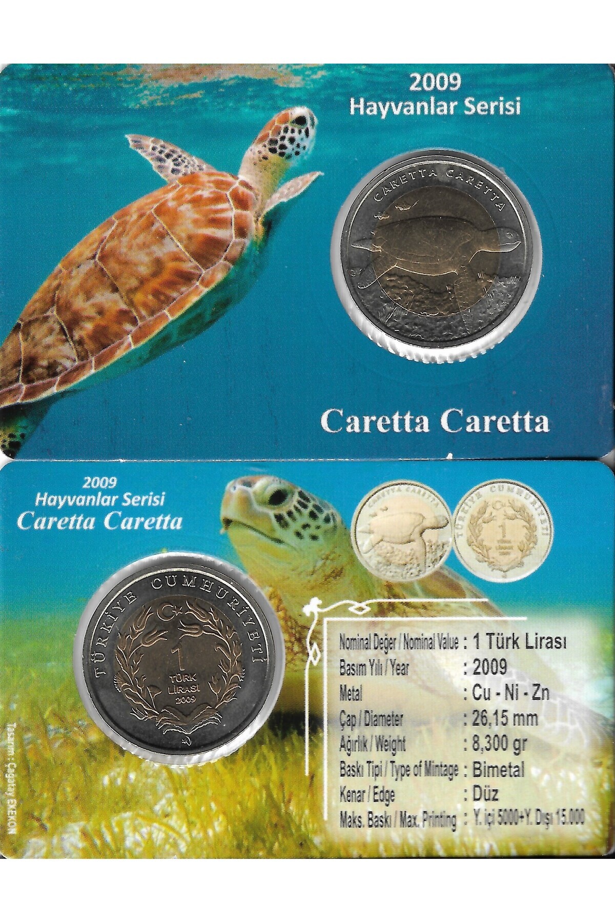2009 Yılı Caretta Caretta Darphane Hatıra Bimetal Çil Özel Renkli Kapamasında